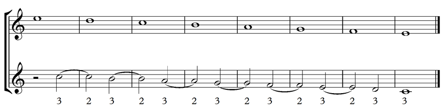 Di seguito (sotto) segue la realizzazione delle serie di ritardi più utilizzate nella letteratura musicale.