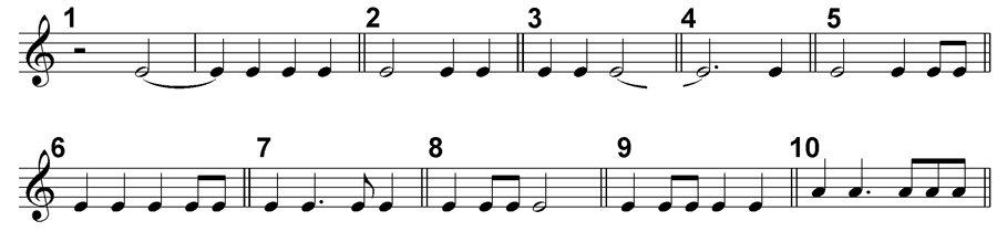 L'esempio sopra mostra i 10 modelli ritmici più utilizzati in questa specie.
